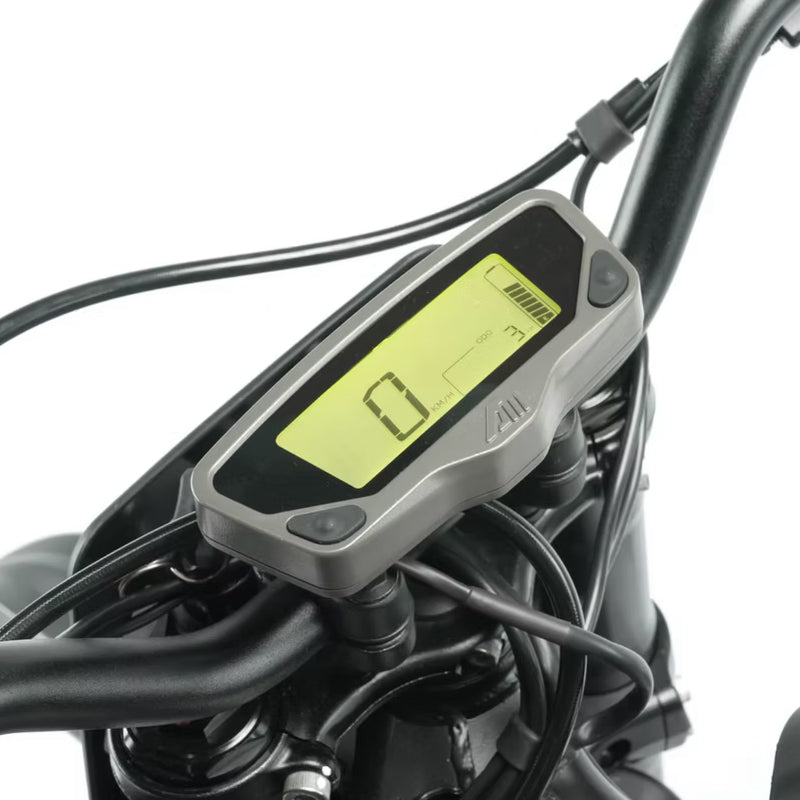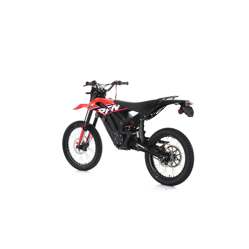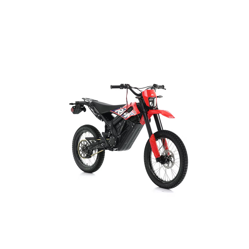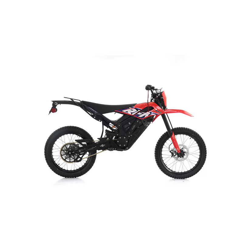 Street-capable Endurance variant with a removable 72V pack, long-travel USD forks, and road-oriented dual-sport tires. Four selectable ride modes (Turtle/Rabbit/Rocket/Reverse) let you tailor range, response, and maneuvering for city, trail, or trials-style play.